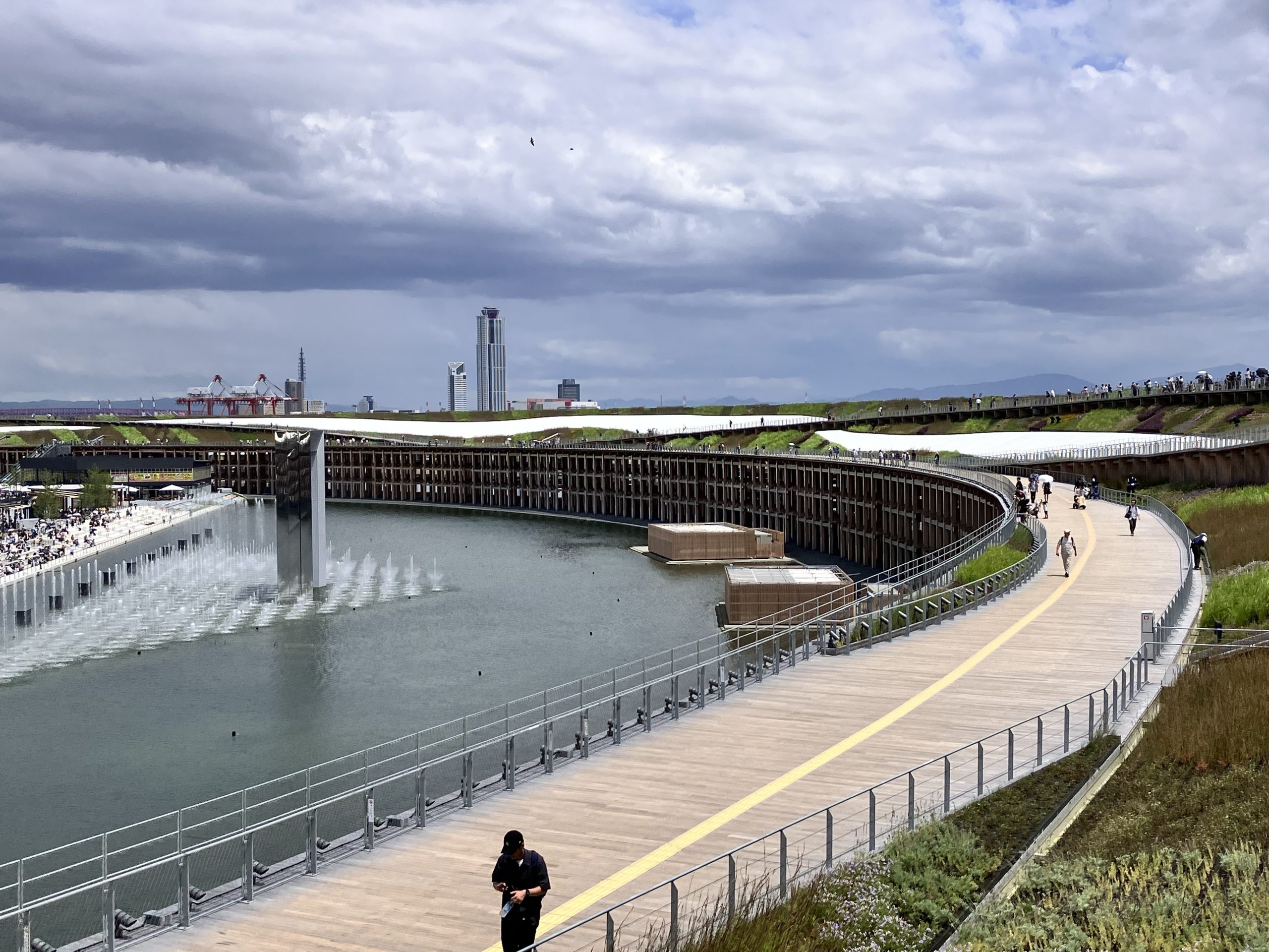 先日、大阪・関西万博へ日帰り視察に行ってきました!朝イチで新幹線に乗り込み、会場入りしたのは11時過ぎ。万博の目玉といえる大屋根リングの構造部をくぐりつつ、早めの昼食へ。その後リングの上部へ上り、海風を感じながらの散歩を楽しみました。木材をふんだんに使った構造がスケール感と温かみを同時に演出しています。大屋根リングだけで大満足間違いなしです。